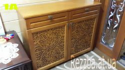 Тумба для взуття, фасади з лазерним різанням, малюнок 1А. Фасади масив вільха, стійки, стільниця шпон вільхи, лазерне різання малюнок 1А.